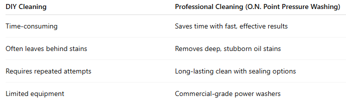 Your driveway deserves just as much attention as the rest of your home. Whether you’re dealing with oil stains on concrete, dirt, or mildew, hiring experts like O.N. Point Pressure Washing ensures lasting results.
